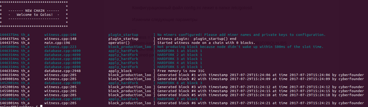 Конфигурационный файл config.ini лежит в папке /etc/golosd.
